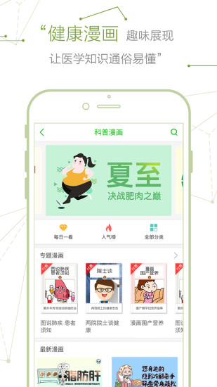 国家卫生计生委指导的健康科普知识宣传共享平台,以疾病健康百科和趣味漫画科普为主,使之贴近生活,易于大众理解和接受,联合权威医学专家、整合优质医疗资源,致力于打造中国最具权威性的医学健康知识科普平台。