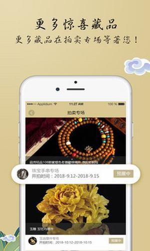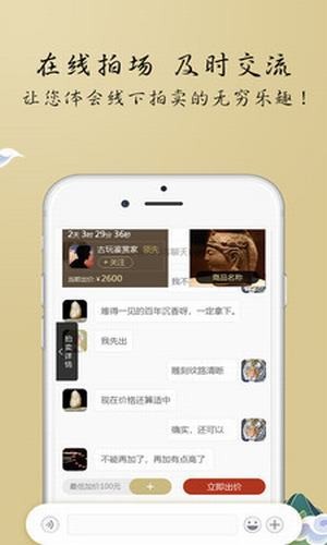 app云集各路藏品,让臻品回归大众生活,通过在线拍卖专场,进行展示、分享美物,不管是名声大噪的拍卖公司,还是籍籍无名的能工巧匠,在这里都能找到知音,,愿匠心不再默默无名。