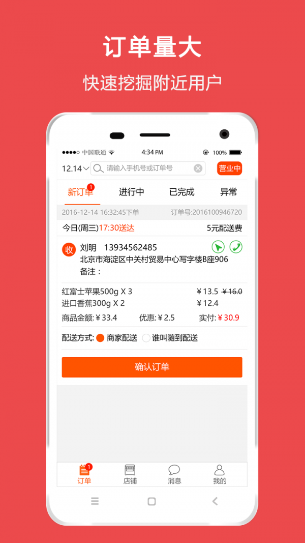 【商家自配】我们引入商家自己配送功能,借助商家富余的配送能力,提高配送效率,进一步满足用户快速购买的需求。