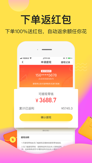 在获得的购物返利就是现金,可随提现到微信,超高返利等你来任性!