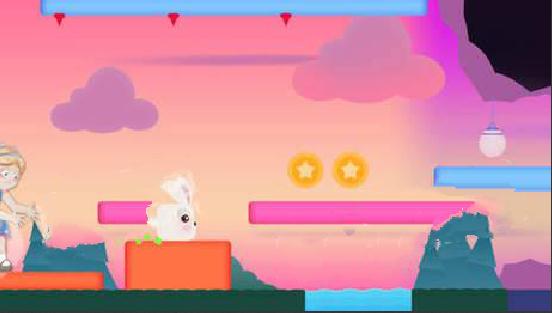 开始游戏将兔子放入赛道中,兔子会不断的向前奔跑,这时需要不断的控制下兔子收集金币,最后到达终点地方!