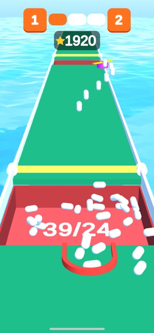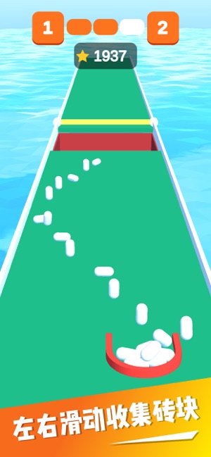 1、操控半圆形的容器,不停收集白色的砖块获得高分。