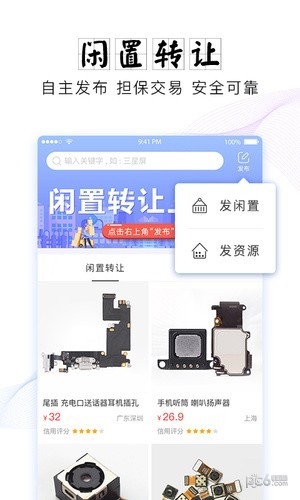 4、app专注于手机后市场的健康发展,服务于手机内置配件、二手手机,以及数码周边的资源整合。