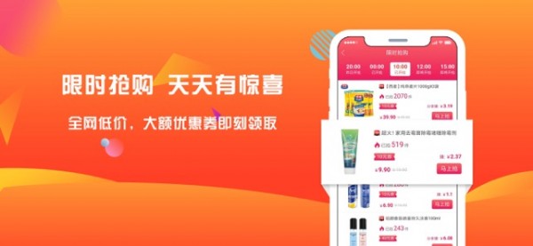app是杭州十分科技有限公司旗下的一款电商导购APP,为客户筛选全网大额优惠券,主要功能为电商导购及自营商城两部分。