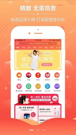 好享逛app是一款优质的掌上导购应用。好享逛app精选全网各大电商平台优质商品供你挑选,并且还有各种内部优惠券为你提供,先领券在购物更省钱。