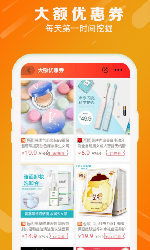 【海量优惠券】 优先挖掘商家隐藏内部优惠券;