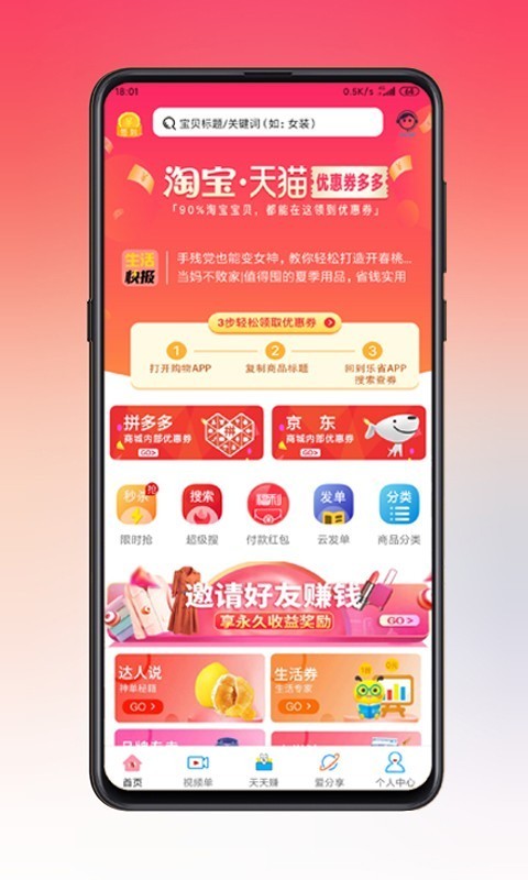 app是一款可以让你购物省钱的同时又能赚钱的APP!集合各大网购平台隐藏优惠券,让你不花冤枉钱!