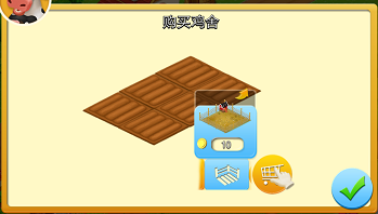 点击商店,从商店里按住鸡舍然后拖出,放到空地上,这样鸡舍就建好了