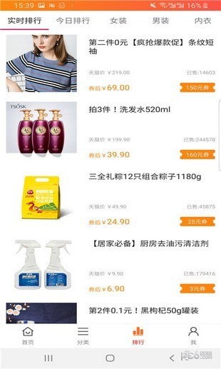 4、实时排行 –实时疯抢排行榜TOP100,2小时更新精选超值优惠券,券后省钱高达50%。