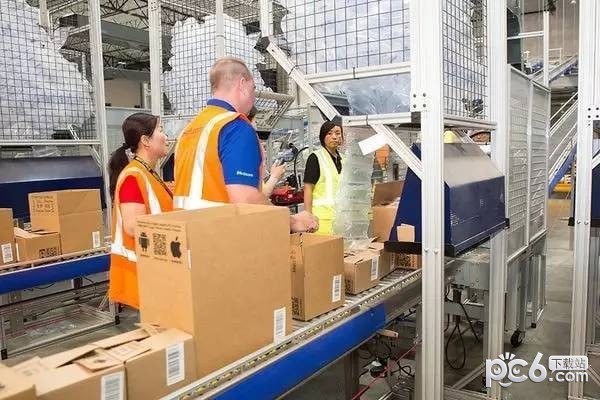分拣完成后会在包裹中填充气囊,以保证安全运输。填充完成后机器会完成自动封箱,并将包裹传送至发货区域。