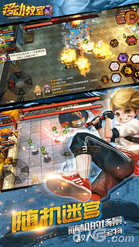 《移动教室安卓版》是一款校园探险题材的Roguelike手游。游戏以动作回合制和策略对战为主要玩法,将奇趣的迷宫战斗题材搬到了校园之中。几乎所有的迷宫都是随机生成,包括随机的怪物和BOSS、宝物、彩蛋事件,同时还有宝箱任务、 隐藏关卡、 随机商店带给你惊喜和福利。同时摒弃了枯燥乏味的单线式养成提升的玩法,游戏中共有9大职业,270个不同的天赋, 1000件不同的装备任你搭配!