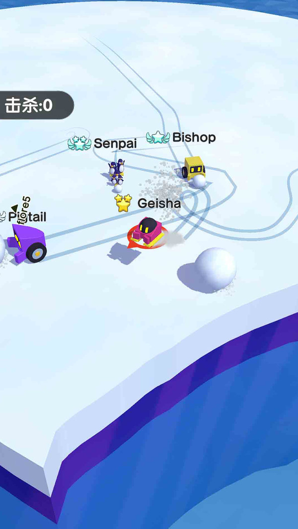 4、操作简单玩,控制小车的运动,可继续得到雪球;向其他玩家发起雪球攻击,击落平台得分;