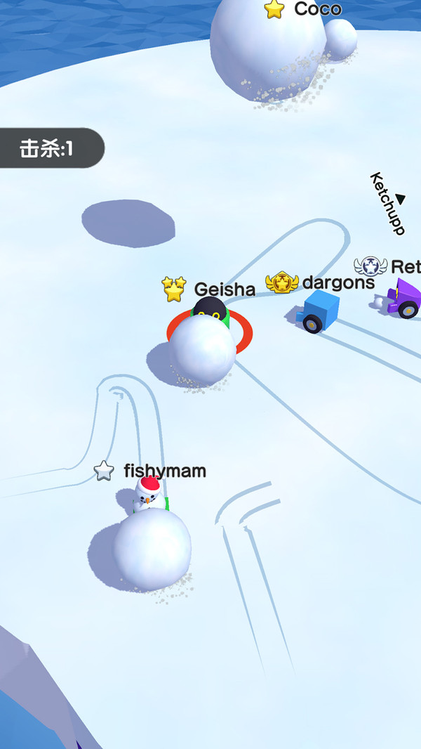 3、每个玩家都有一个共同的目标,那就是让他们的小雪球滚得越来越大,直到他们成为最大的雪球。