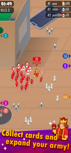 2、在不同的级别上,其他玩家的卡片角色应该被击败以获得他的军队。