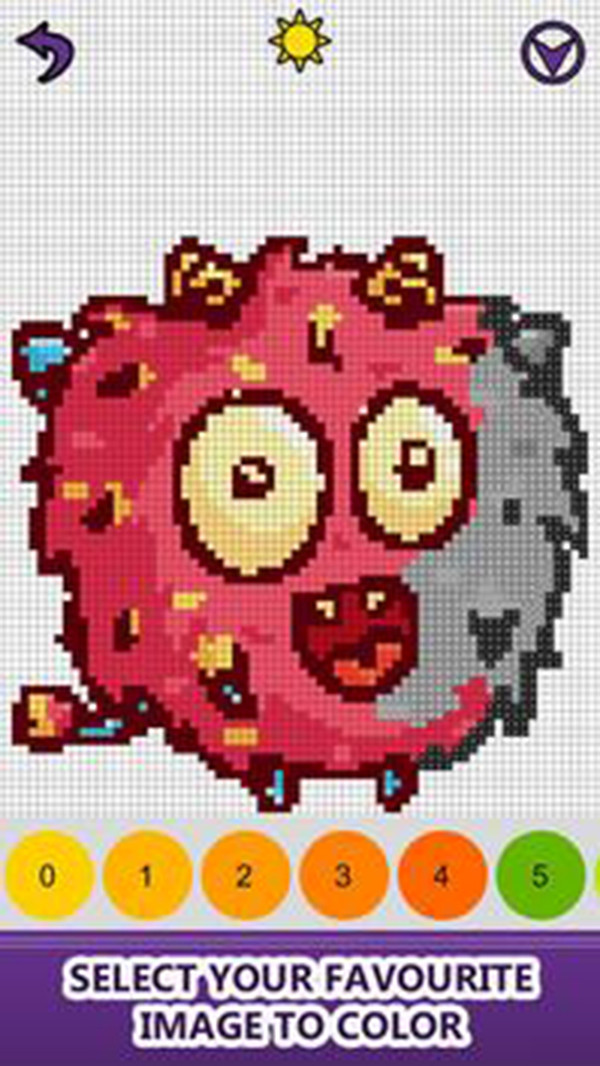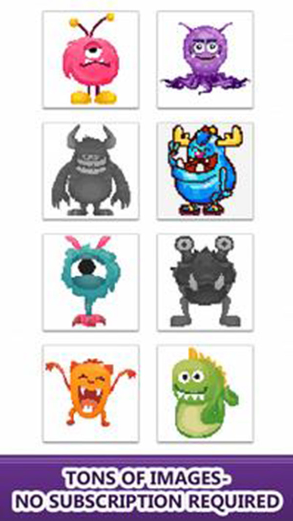 数字怪物颜色是一款精致的涂色游戏,玩法轻松简单有趣,操作简单易上手,游戏画面精致简洁,需要将对应号码的颜色的线秀到相应的图形上面去就可以了,最后修完了就会呈现原本那副图的样子,喜欢的快来下载吧!