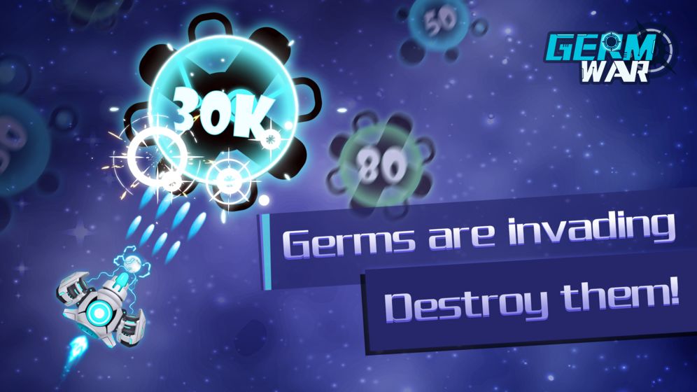1、消除细菌-太空射击游戏是一个神奇的行动街机游戏你玩过。它非常神奇,可以消磨时间。这绝对值得你挑战!