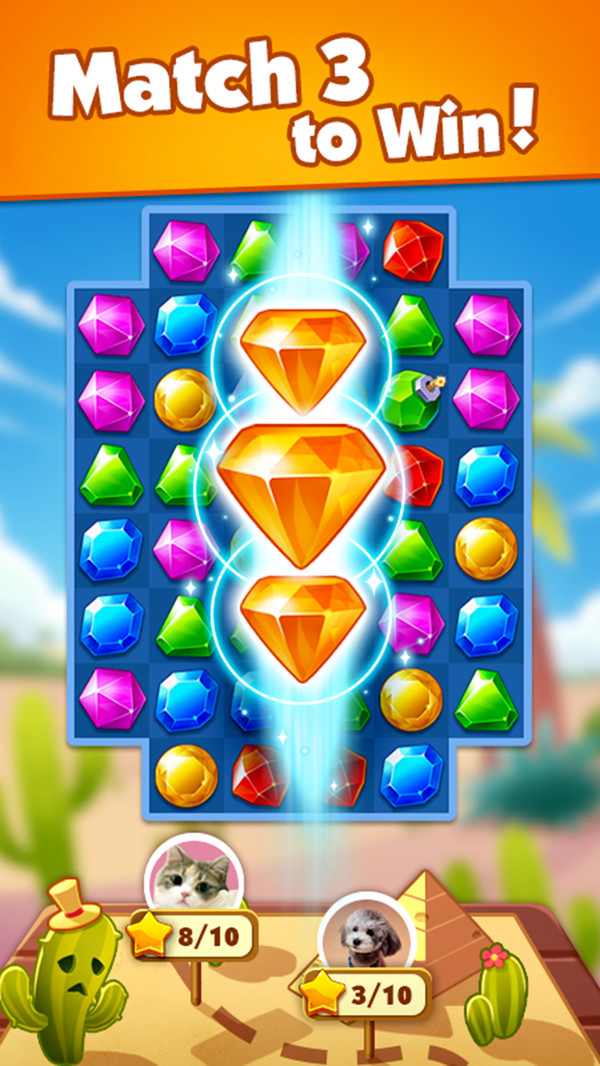 宝石探险是一款制作精美的趣味三消游戏。游戏拥有丰富的背景主题,玩家可以跟随着剧情的发展前往各地展开宝石探险,在沙漠,丛林中完成消除挑战,寻找宝石的信息,感受消除带来的乐趣!