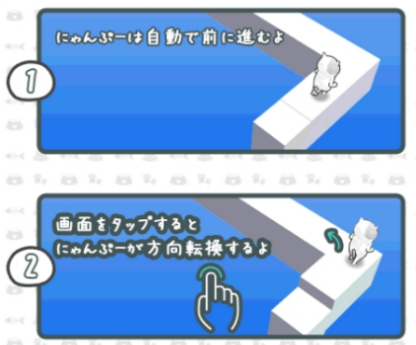 游戏开始时,猫会沿着轨迹走路,但是猫只会直走,你需要点击屏幕使猫改变方向运动,如果在转折位置点错或者没点,猫就会掉落下去。