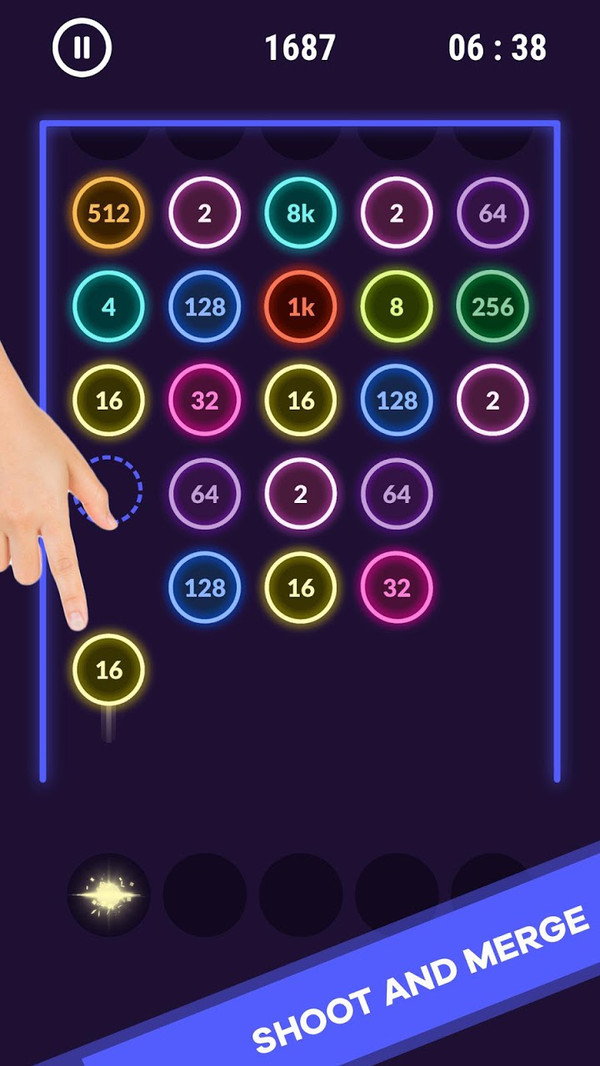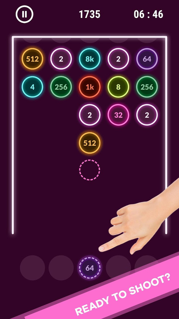 4、挑战高分,并与全球玩家进行比较。其想法是尽可能快地发射环,并合并相同数量的环。