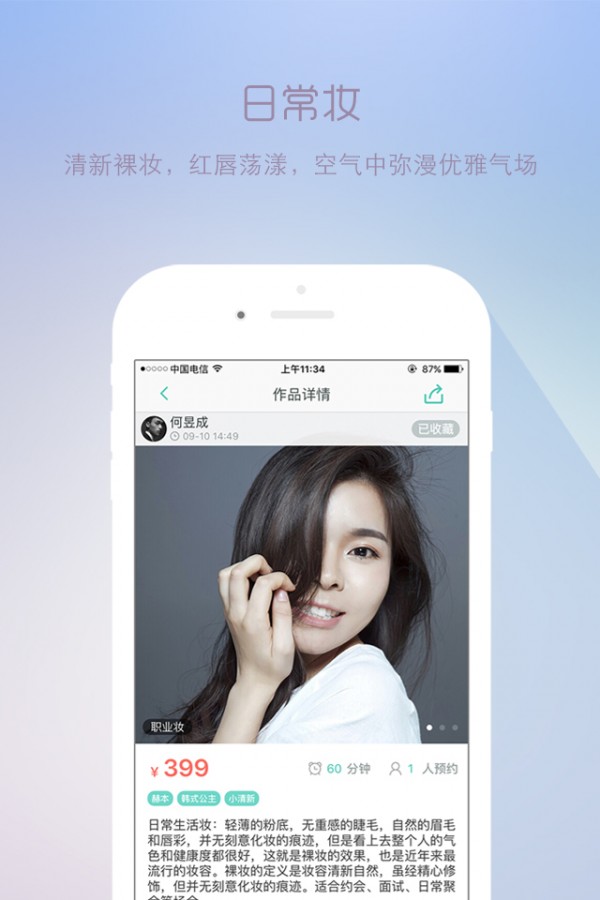 南瓜姑娘APP已经聚集近百位各大时尚杂志、明星艺人指定的资深造型师,采用国际一线大牌彩妆品,带着专业顶级美妆手法,只想陪伴你“美“一段人生旅程。