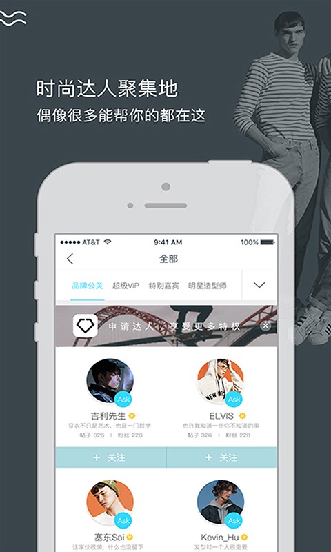 【发帖功能】邀请各领域的KOL成为内容生产者,找到和你类似的人,一键FOLLOW;