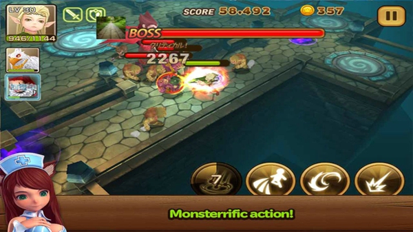 游戏搭载除了发动技能以外的操作都自动进行的自动战斗模式,玩家可以轻松享受战斗和冒险的过程。游戏公开初始就有超过200种怪物和角色登场,玩家要从自己拥有的怪物和角色中选择三只组成队伍来进行冒险和对战,根据战绩,在队伍中的宠物和角色可以获得一定的经验值,战斗胜利能够获得金币和道具,玩家可以通过合成道具或装备武器来提升角色的能力。宠物和角色的种类还会陆续增加哦!