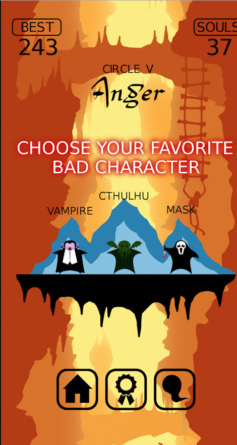 《逃离地狱Go to Hell》是一款有趣的休闲小游戏,游戏类似《涂鸦跳跃》与《是男人就下100层》的结合体。游戏中可恶的恶人们都被打进了无限深的地狱,玩家可选择一个自己心仪的恶棍角色逃离地狱。玩家点击屏幕控制恶棍跳的方向,要准确的跳过障碍之间才可。喜欢的玩家快来下载体验吧!
