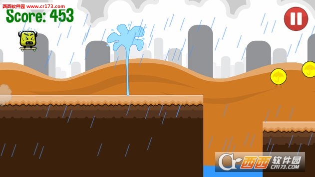 小怪物需要得到家没有弄湿..嗯,至少在没有淹死。在雨润小怪兽,过水,和整个城市对他的滑板。