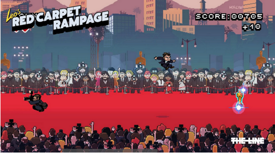 游戏尽管采用像素风格,但该有的人物和事件特征却丝毫不马虎,就像下面的爬行梗,其实就出自小李子的《华尔街之狼》;另外穿宇航服的是《火星救援》的男主马特·达蒙,女装的是《丹麦女孩》的小雀斑,只要是关注欧美娱乐圈的朋友都能轻松找到自己熟悉的元素来。