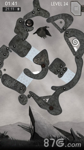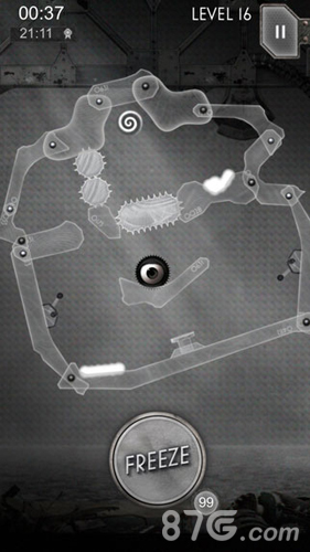 玩家在《冰冻时间》游戏中将已一个较为万能的角色出场,你拥有能够使地心引力消失的魔力,利用地心引力消失的间隙来帮助英雄逃生。游戏采用插画跟拼图式的画面场景,加上迷幻阴森的背景音乐,为玩家营造了一个非常诡谲的游戏氛围,玩家需要通过手指来滑动点击手机屏幕,控制转动牢房,以最直观的方式来寻找出路。游戏操作虽然简单,但是玩家要想逃生成功,却是非常不易的,因此玩家要仔细观察牢房的各个角落,找到正确的出路。