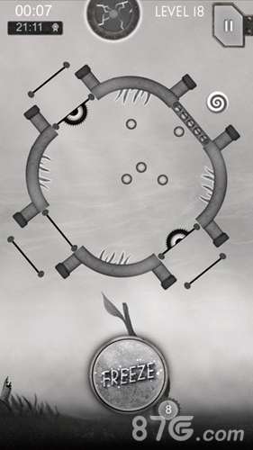 冰冻时间(Freeze!)是国外独立游戏开发者Andreas von Lepel在安卓、ios两大平台发布的最新解谜力作,游戏根据物理学原理加上暗黑系的魔幻现实主义绘画风格,为玩家创造了一个奇妙的神秘世界。游戏用黑色画面色彩贯穿整款游戏,让玩家在非常阴沉压抑的游戏环境中进行冒险,除了游戏带给人的阴暗感觉之外,游戏也拥有一个令人无奈的背景故事,讲述了无名英雄被邪恶力量囚禁在一个遥远的星球上,彷徨与无助时刻袭击着他,玩家将要帮助英雄摆脱困境。