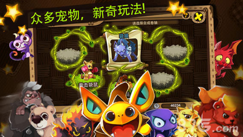 2、欢乐精灵拥有上百种宠物供玩家选择收养,宠物们分为八种属性,各有千秋,玩家可以自由组合,带它们一同出战。