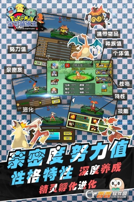 1、采用的是2D像素画风,100%深度还原GBA版口袋妖怪的风格;2、留用户自由探索的特点,由剧情主线进行牵引;3、激萌痛快的战斗,实力出击混战,开启无限的冒险旅程。