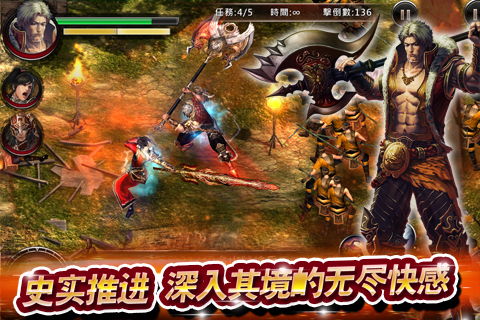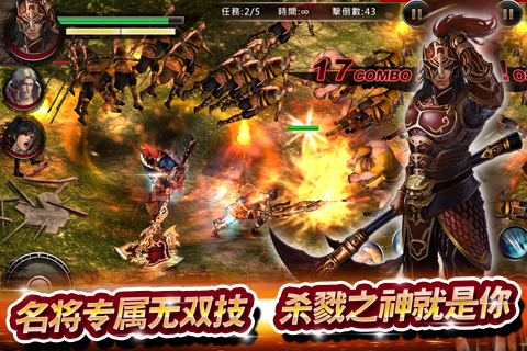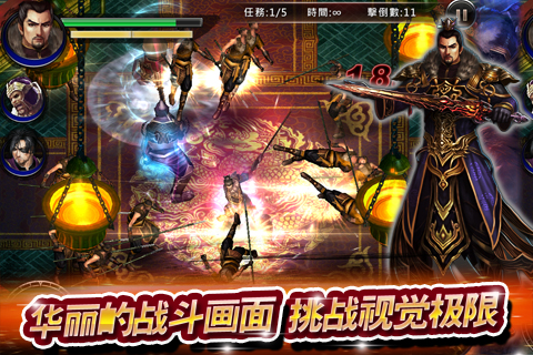 ★华丽的战斗画面与动感的配乐音效。古代色调与轻快的画面风格,营造刺激紧张的游戏体验,加上动感的配乐音效,打造出视觉与听觉的飨宴。享受抵御敌军的过程、武器挥击、多人必杀技施展的音效,层层迭迭刺激玩家的听觉体验。充分使用昱泉核心技术,强化视觉特效、画面、音效、操作流畅度的体验。