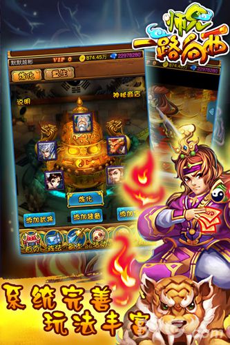 师兄一路向西游戏采用精美华丽的游戏画面,将西游中的人物角色尽数呈现在玩家眼前,不管是唐僧师徒四人还是妖魔鬼怪,他们的造型均是Q萌可爱又极富个人特色;同时游戏在经典的西游记的故事情节中有乱入了诙谐幽默的其他剧情发展,让玩家的西行之路充满乐趣;游戏在战斗制作上也极具新意,游戏将主动释放酷炫的角色大招,让玩家享受到谈笑间樯橹灰飞烟灭的快感。