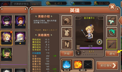 当灵魂碎片数量足够后,点击英雄界面中的进化按钮就可以进行升星了。升星宜早不宜晚,因为《动漫英雄》升星是提升成长值,早日升星可以早点享受到高属性加成了。不过,大家也不用担心升星太晚会不会损失属性。
