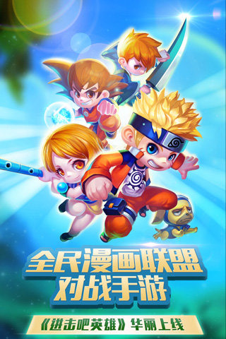 全民大乱斗,经典动漫玩起来!新动互娱年度动漫巨制《进击吧英雄》,即将掀起动漫ACG热潮。五大趣味玩法、百位动漫角色、千种战队组合,带你制霸动漫世界!你的梦想是成为海贼王还是火影?你想得到七龙珠还是斩月?二次元混战已经开启,还不快来让你爱的角色登顶!