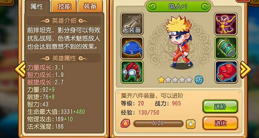 鸣人是你得到的首位英雄,他不同于其他的英雄,鸣人是完全可以用到最后的,不低的输出以及极高的血量。无论是刷图还是竞技,他都可以作为第一主角存在于你的队伍之中。