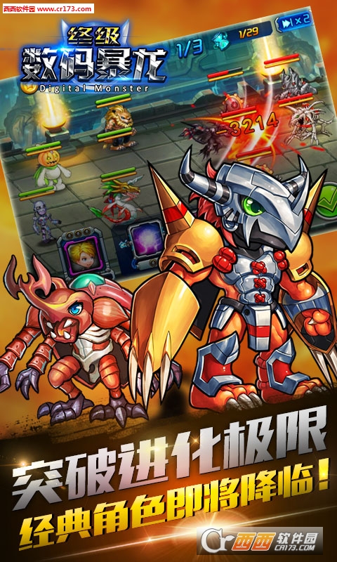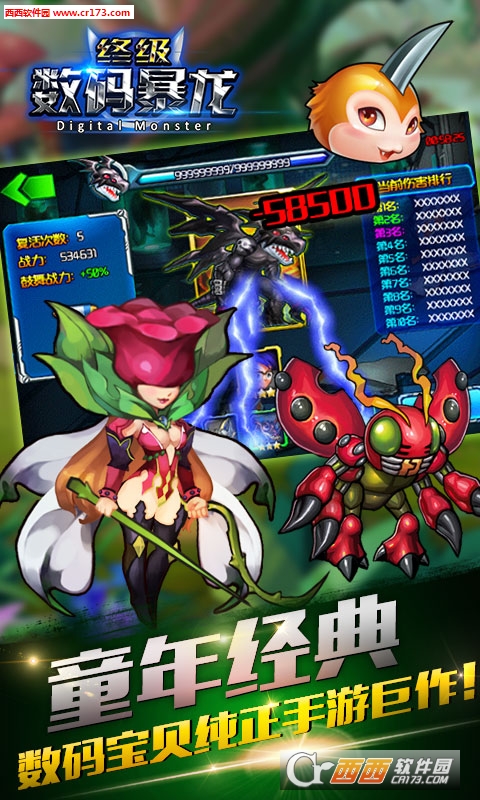 终极数码暴龙(上线送vip4)是一款根据童年回忆数码宝贝改编的角色扮演类手游,游戏采取横版回合制的战斗模式,超过经典的数码宝贝都将在游戏中登场,玩家可以随意组合出超强队伍进行战斗!