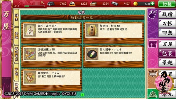 除了上述资源外,委托符也是开炉锻刀的必备材料,委托符可以通过出阵、日常任务或万屋中获得。使用梅、竹、松、富士四种四种御札则能显著提升铸造时获得稀有刀剑男士的概率。