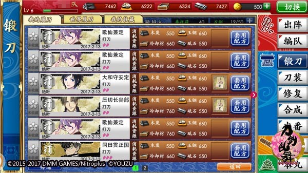 《刀剑乱舞-ONLINE-》中文版还加入了专项的履历系统,玩家可以在游戏中查自己的锻刀履历、全服其他玩家的锻刀履历、以及自己收藏的锻刀配方,并且可以直接套用配方,让欧皇带你直飞欧洲!