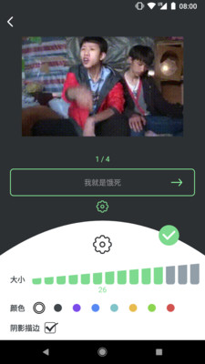 选定模板之后就直接进入字幕编辑状态啦。只需一次将每一个时间段想要配上的字幕输入,并不断点击下一步直到完成就可以了。如果有需要的话,还可以修改字幕的大小、颜色等属性哦。