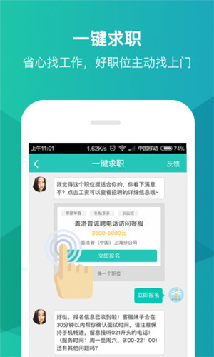 4、客服服务专一:优蓝网客服一对一的服务,提高求职者面试报到率