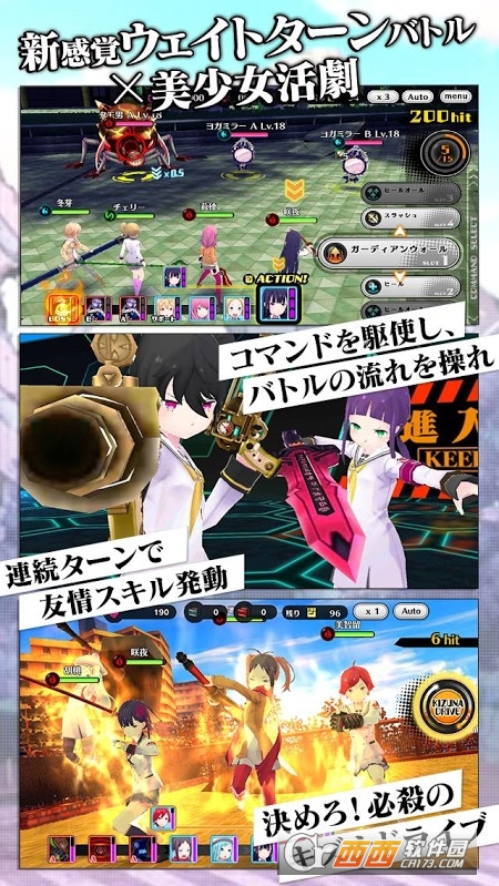 本作基本的战斗系统是可以根据选择的指令来让战局变化的“新感觉等待指令战斗系统”。如果可以延续自己的角色的回合,就可以发动“友情技能”或者必杀技“羁绊Drive”,一击打倒来袭的敌人。