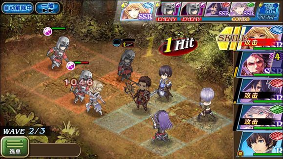 战斗运用3x3方格主战场,玩家最大出战5人,其中自己队伍4人,在线招募协助玩家一人,采用ATB攻击模式展开战斗,画面右侧的人物头像就是ATB槽,画面上方的空格则是行动格,稀有度越高、级别越高的角色ATB越快,右侧头像亮起就可以点击角色占领行动格攻击,连续点击角色将行动格占满的话就能形成小队Combo,给予敌人更大的伤害。