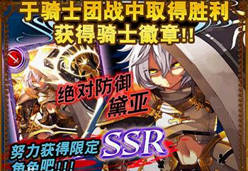 骑士团战是最多20人vs20人的实时战斗。玩家可以加入某个骑士团并在规定时间内参加团战,团战总共要出战10名角色,玩家之间的战斗则是5V5进行。玩家的每一次获胜都可取得庞大战场中的一小处区域性胜利。玩家不仅要负责每一场战斗的指挥,也要把握全局做出全军补给等指示。在你不断在PK中获胜,你的军团也会势力大振,势如破竹地击溃对方军团。同时,收集骑士团战奖励的骑士徽章,可以换取限定的SSR卡牌