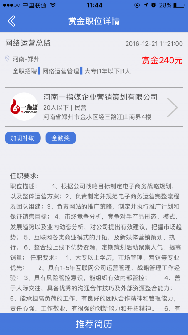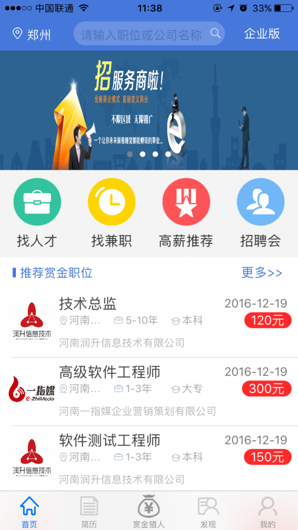 4、指缘招聘个人版您的简历放在指缘平台,企业每下载一次您的简历,您就会赚一块钱。