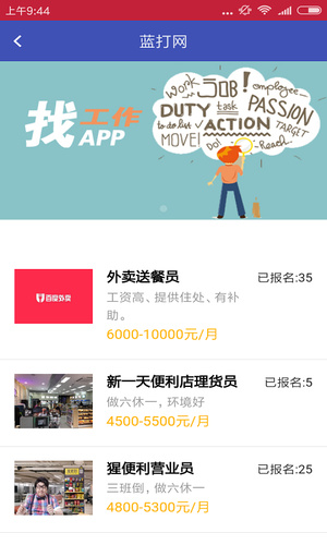 app是一个蓝领招聘平台,app专业为蓝领提供100%真实招工信息,app把互联网线上与线下结合一体,app致力打造线上蓝领招聘最受欢迎的服务品牌。