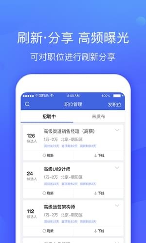 4.管理职位:可对职位进行简便管理,刷新、上线/下线、分享等;