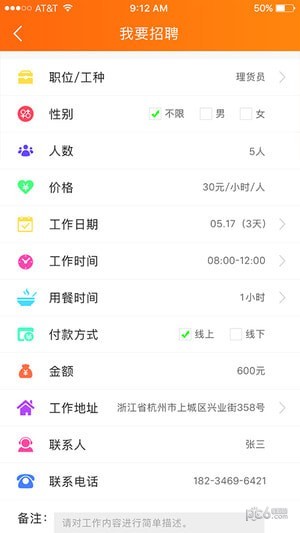 招聘方可以通过app发布招聘信息,可以选择线上支付或线下支付,线上支付需要充值余额或直接使用第三方支付方式支付,线下支付的话招聘方直接与应聘方在工作完成后交付。